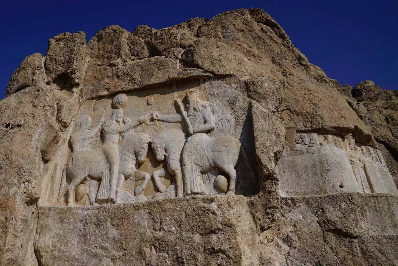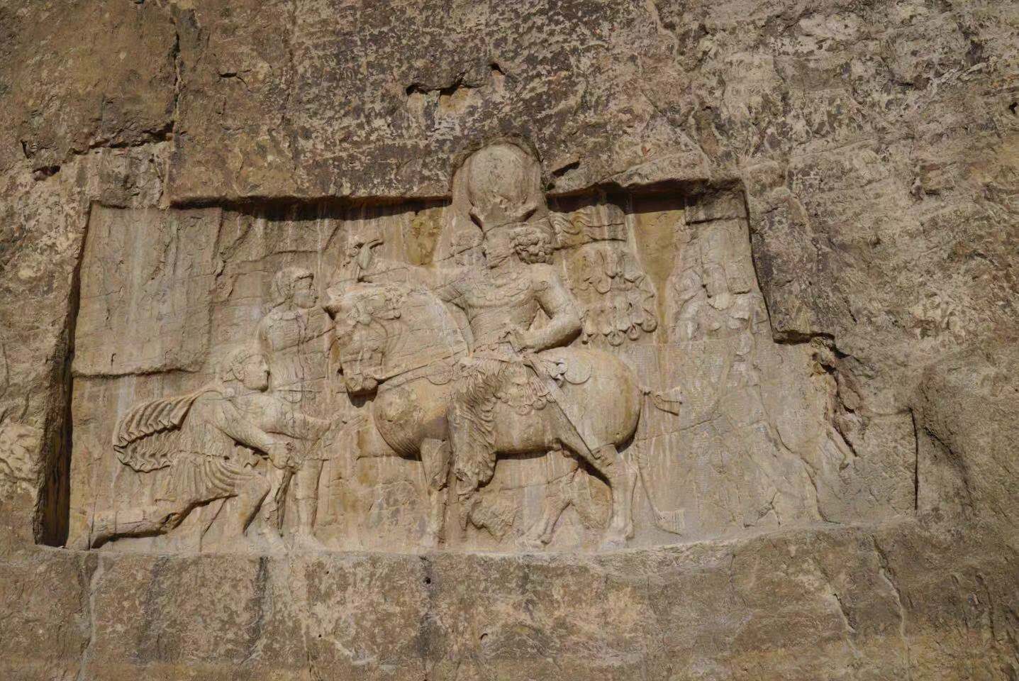 This scene depicts the victory of Shapur, one of Sassanian kings against three Roman emperors